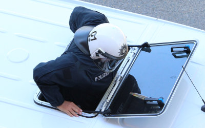 Oft rollen demolierte Polizeiautos auf den Hof. Die Idee der Sicherheitsscheiben ist geboren. KRD entwickelt Aufbauten für kleine Lieferwagen.