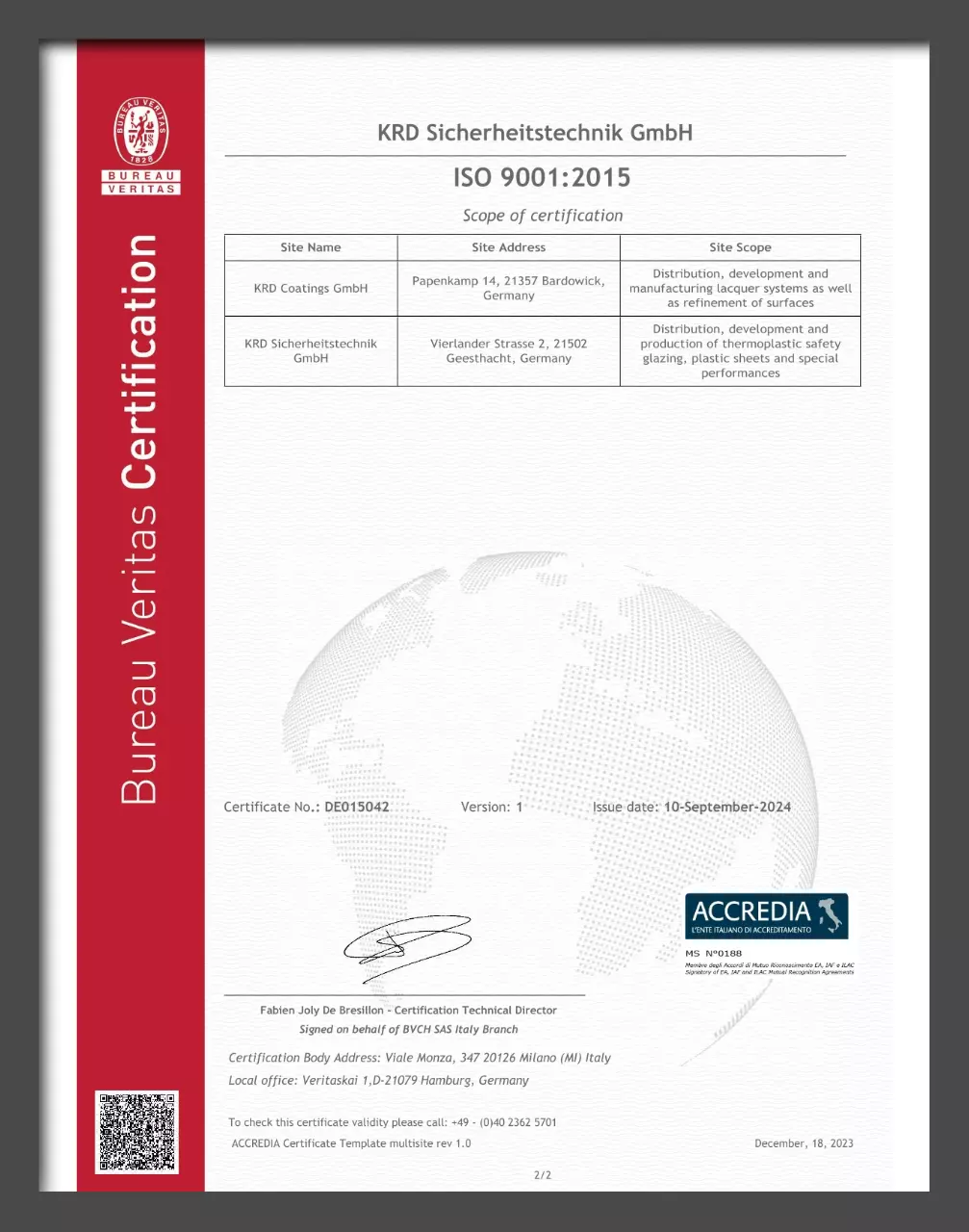 QM certificate according to DIN EN ISO 9001:2015 for safety technology