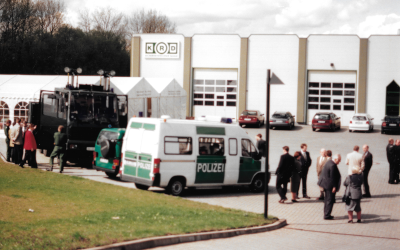 Der Bedarf an Sicherheitsscheiben u.a für Polizeiautos wächst stetig. 1998: Erster Anbau mit 1.000 qm, es folgen 2003 weitere 2.000 qm.1994 -